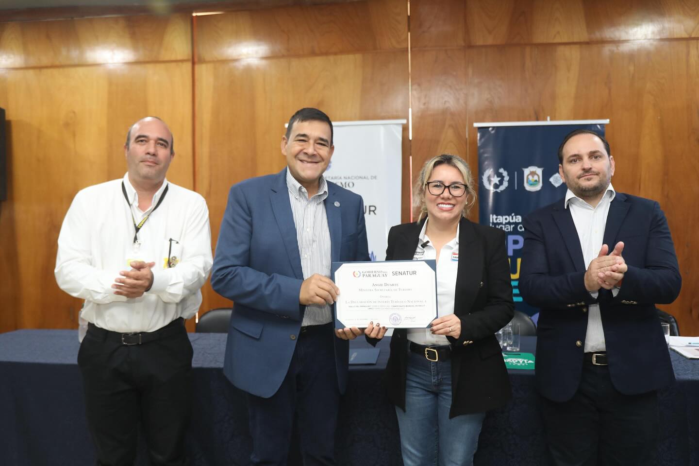 En la maรฑana de hoy miรฉrcoles 9 de abril, el Intendente Municipal Don Euclides De Godois, en representaciรณn del distrito de Bella Vista, recibiรณ el Certificado de Declaraciรณn de Interรฉs Turรญstico Nacional por parte de la Ministra de Turismo Angie Duarte, durante un acto realizado en Turista Rรณga – Encarnaciรณn.
